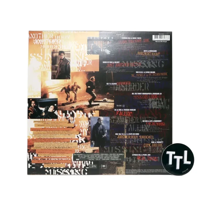 “The 1993 film Judgment Night was basically suburbia’s paranoid view of inner-city life, where the slightest misstep (such as trying to take a shortcut to a boxing match) has fateful, if not fatal, consequences. And what better music to accompany this middle-class nightmare than a hybrid of the music suburbanites seemed most afraid of; Rap and Rock. It turned out to be quite a fruitful collaboration; while the film bombed, the soundtrack went gold. Judgment Night spawned four singles: Biohazard & Onyx’s ‘Judgment Night’, Helmet & House Of Pain’s ‘Just Another Victim’, Teenage Fanclub & De La Soul’s ‘Fallin’ and Faith No More & Boo-Yaa T.R.I.B.E.’s ‘Another Body Murdered’. It also features a highly sought after collaboration between Pearl Jam & Cypress Hill. Ice-T and Slayer manage to thrash it out on an unsurpassed level, while Sonic Youth & Cypress Hill have that slightly paranoid sound you get from loving Mary Jane a little too much.” – Music On Vinyl