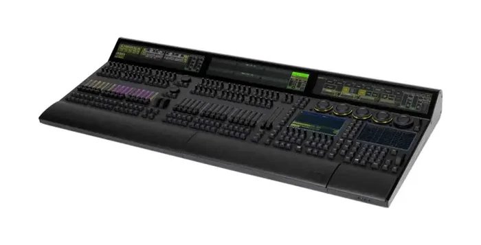 The three letterbox screens are context sensitive and dedicated to providing feedback and options for the grandMA3 console playback and encoder hardware. The grandMA3 full-size CRV is compatible with grandMA2 and grandMA3 software. The hardware is ergonomically optimized and can be considered a silent version by default. The grandMA3 lighting control consoles offer a fresh user interface with an optimized command area for intuitive and fast access. The grandMA3 consoles features dual encoders, which provide users with intuitive control of additional features and functions. Feature-mapping of the dual encoders will be customizable, facilitating ease of use and faster programming.