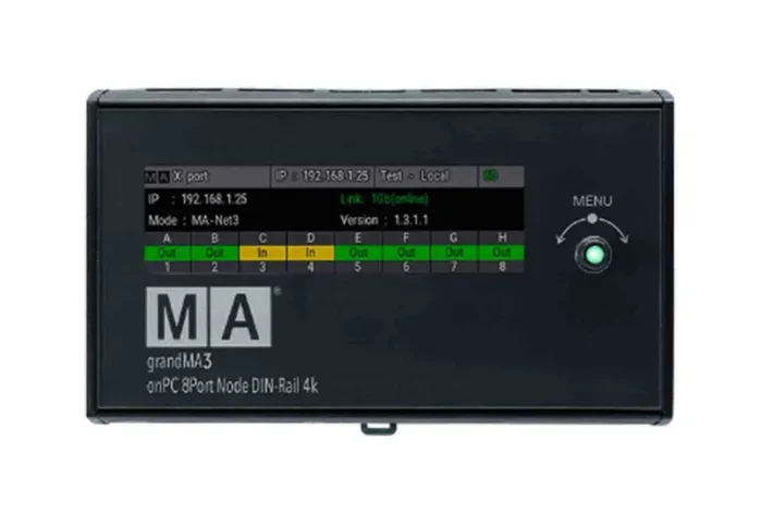 A few more facts? All grandMA3 onPC xPort Nodes can handle MA-Net3, MA-Net2, sACN and Art-Net data. They are fully RDM compliant and have a 3.9″ color display on the front for easy configuration and status overview.