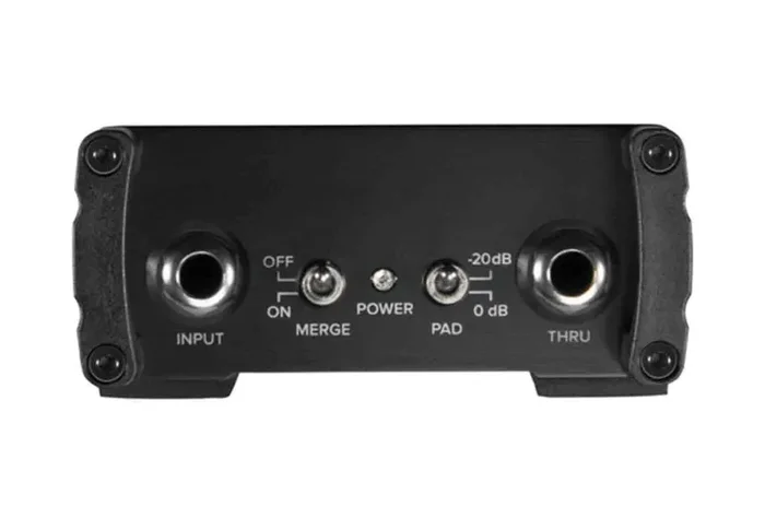 The Mackie MDB-1A is an active direct box designed to connect a single instrument such as a guitar, bass, or keyboard to a microphone preamp for musicians and audio engineers in recording sessions, houses of worship, and live stage applications. It converts a high-impedance, instrument-level signal via its 1/4″ TS unbalanced input to a low-impedance, mic-level output via its balanced XLR 3-pin jack. A 1/4″ thru jack allows simultaneous connection to an amplifier or pedalboard.