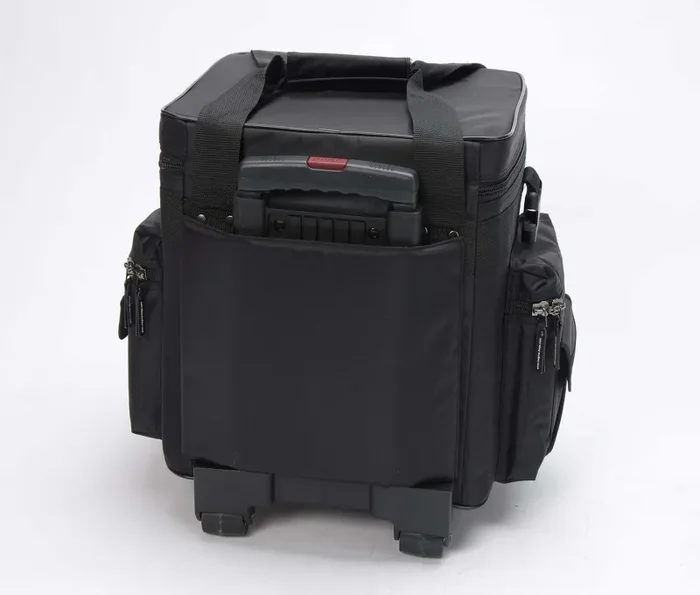 The Magma LP-Bag 100 Trolley is made from durable, water-repellent nylon and and features extra thick 1″ padding all around the main compartment. The back wall is also padded to protect the handle. There are three large outer pockets for accessories such as headphones and needles. The Magma LP-Bag 100 Trolley also includes a removable shoulder strap and comfortable carry handles.