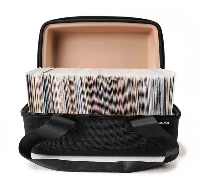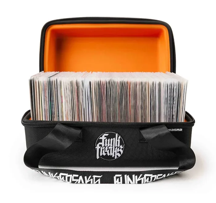 The Magma MGA430, 45 Sandwich Record Bag is designed for dedicated 45 vinyl-DJs, the all-new MAGMA 45 SANDWICH offers a remarkably sleek and lightweight innovation for carrying your 7“records. Constructed with a fully molded, shock-absorbing EVA shell, this case ensures superior protection and a secure fit for up to 150 7“records.