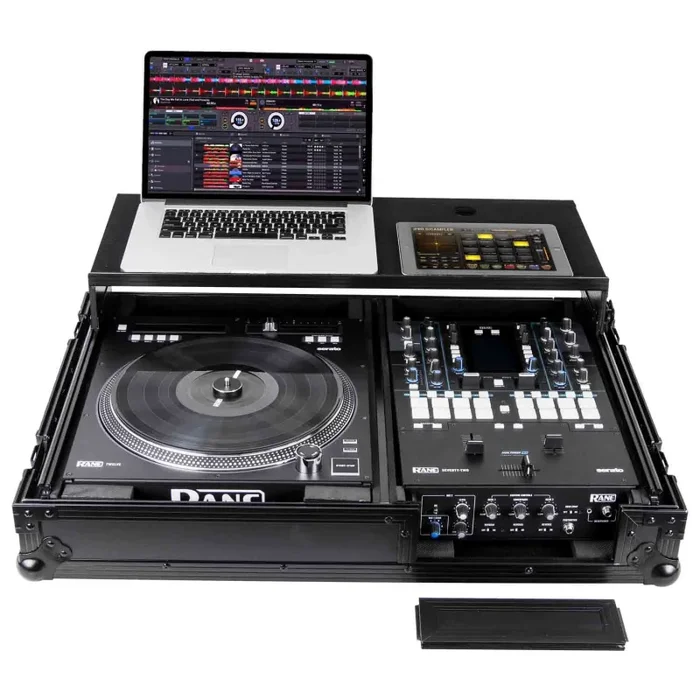 The Series FZGS1RA1272WBL Glide Style DJ Coffin holds one Rane 72 mixer and one Rane 12 Motorized Turntable controller. The unique design allows you to configure your setup as you choose with the mixer at the left or right side as preferred, and with its glide platform tension latch rail system you can add our optional Producer Series GSA angled add-on panels. Other features include rugged built-in roller wheels, recessed latches, and spring-loaded handles, heavy-duty ball corners, and front and rear mixer section access panels. Cabling is clean and easy with convenient access ports throughout the case.