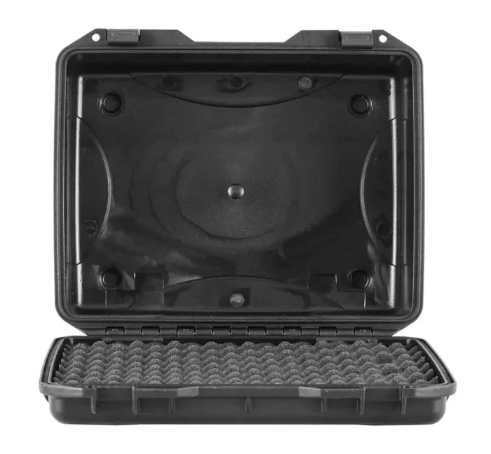 The Odyssey VU110804NF Vulcan Injection-Molded Utility Case – 11 x 8.5 x 3.75″ Interior features an interior space of 11 x 8.5 x 3.75″ and comes with convoluted foam under the lid. No foam is included for the interior space. The case is impact resistant, watertight, and dustproof. It has a comfortable carrying handle, a pressure release valve, and padlock holes. It’s also stackable with other Vulcan cases of the same size.