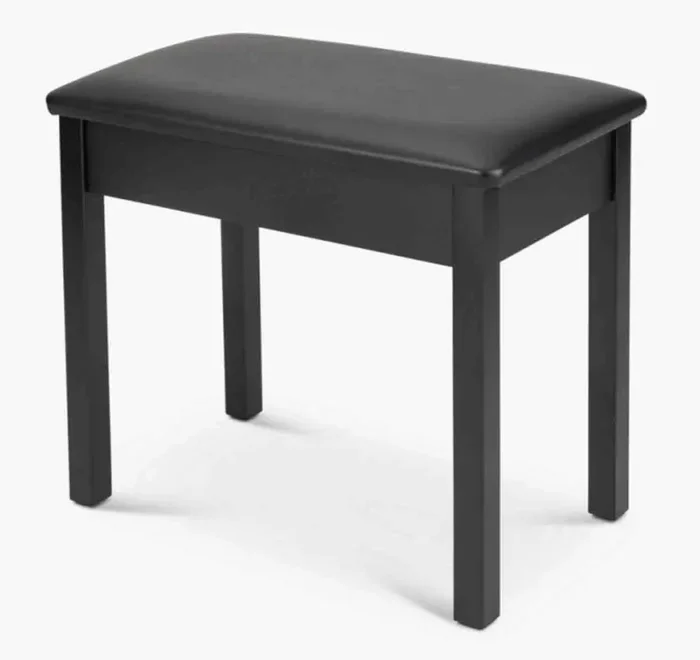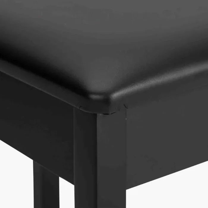 The OnStage KB8902B Flip-Top Piano Bench with Music Compartment (Black) features a hinged seat that lifts to reveal a compartment perfect for storing sheet music, metronomes, and other accessories. The seat cushion is soft yet firm and has a ventilated cover to provide cool comfort and support. Its solid wood base with rubber feet delivers slip-free stability while displaying elegant optics for the stage.