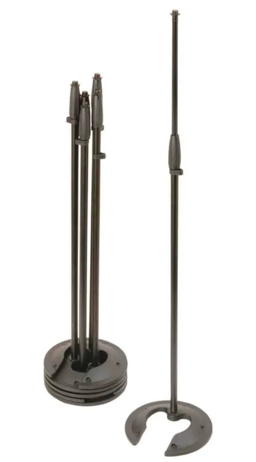 The OnStage MS7325 Stackable Microphone Stand solves that problem, with its notched base, up to five stands can be stacked for efficient storage and transportation. The wide, heavy base provides the same exceptional stability as a standard round base. Rubber feet reduce vibrations and prevent slipping. The shaft adjusts in height to accommodate a variety of miking applications and accepts booms, mic clips, and other mic accessories.