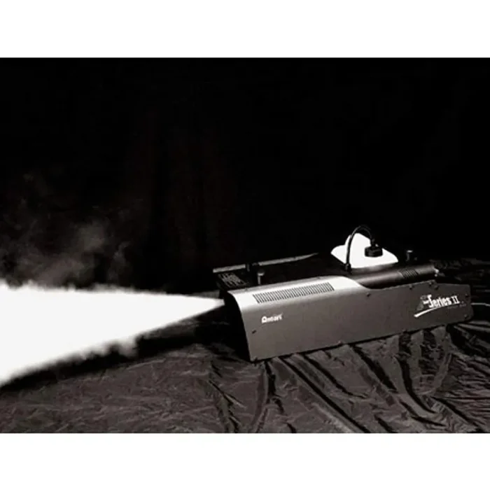 Its energy-efficient 1500W heater outputs 20,000 cubic feet of dense swirling fog per minute. DMX controllable it comes with a remote and will stand up to hard touring work. The Elation/Antaris Z-1500II is the result of rigorous research and development to enhance its machine lifetime, stability and reliability. Because of its compact size and durable appearance, the Z-1500II fogger provides significant advantages in wider applications where great volumes of fog output is critical. The Z-1500II saves up to 25% of the electricity of its predecessor. This efficient power control system allowing the fogger to operate at low-level temperatures. These cutting-edge features including a heater pipe made of nickel-aluminum alloy adopted for fast and efficient heat transfer. The heater element is enormously powerful and robust which generates great volumes of fog output in a steady and silent extrusion without leaving any residue inside. An electronic low fluid detector with Thermal Cut-Off (TCO) is also installed which automatically cuts off the pump power and stop pumping when running-out of fluid. Z-1500II has a built-in dual DMX-512 interface and can be controlled remotely with a digital display control module.