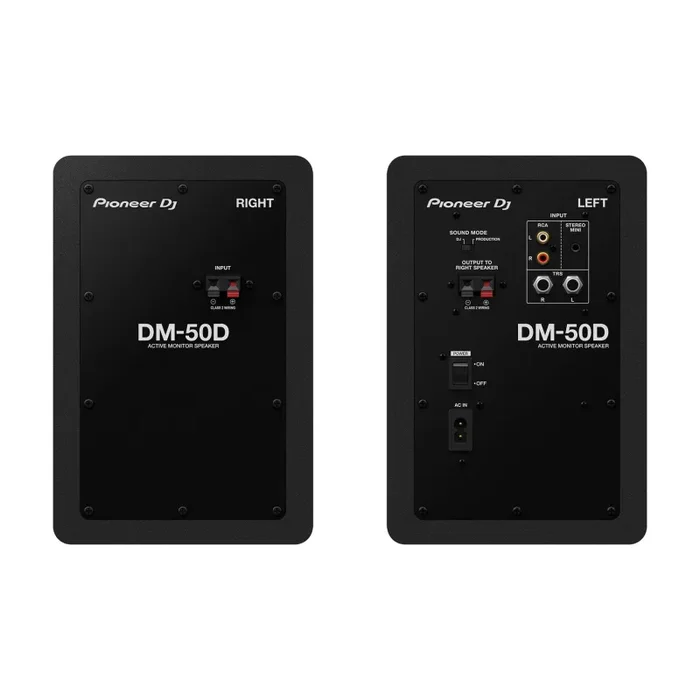 “The DM-50D speakers deliver balanced, punchy bass sound and they can pump out extra power thanks to the new Class D amplifier and 5-inch woofer in each unit. Flick the switch to change from DJ mode to Production mode and the DSP settings will automatically create the best sound for each application.” – Pioneer