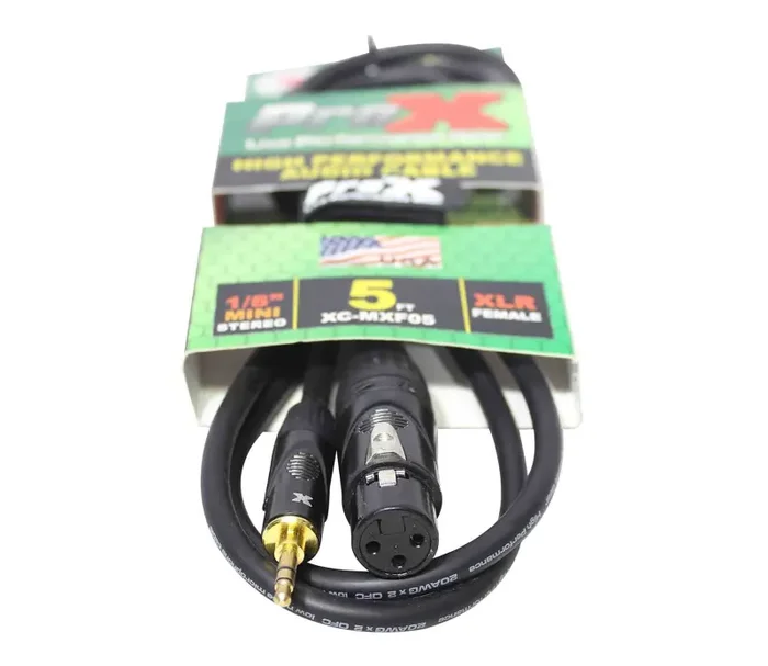 The Prox XC-MXF05 is an Unbalanced 3.5mm TRS-M Mini to XLR3-F High Performance Audio Cable – 5 Feet is a Single 1/8″ (3.5mm) TRS Mini to Single XLR-F 5ft. Cable, made for perfect quality sound. The L+R are combined and connected to Pin 2 of the XLR to provide a mono signal from both channels to a single connector. ProX cables are built with uncompromised quality with excellent performance at each connection – Instrument cables, Speaker cables, RCA cables, DMX cables, Power cables and more. Our cables are made for professionals, by professionals.