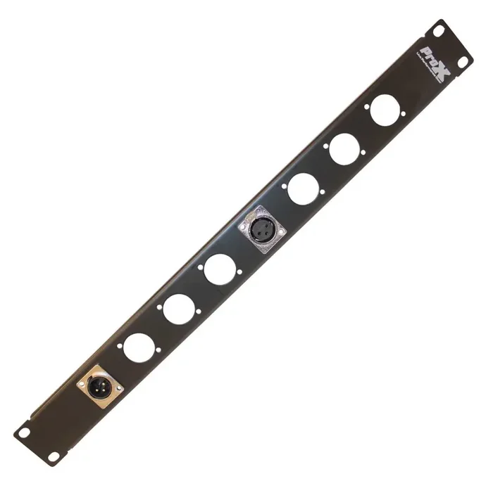 The ProX T-1U8XLR is a 1U Rack Panel Punched for 8 XLR, Speaker twist connector or powerCON compatible Connectors. The ProX T-1U8XLR 1U Punched Rack Panel is ideal for creating custom cabling systems for more secure connections and fast setup and teardown of gear. Panels can be filled with a combination of XLR-M, XLR-F, Speaker twist connector or powerCon Panel Mount Connectors as well as pass-through connector adapters. ProX rack panels are reinforced on both edges for additional strength and reduced flexing.