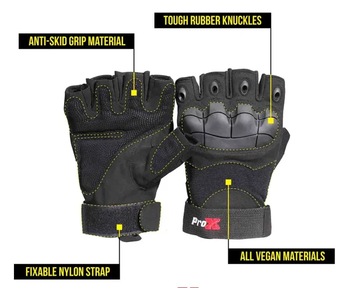 ProX X-GRIPZ Hard Rubber Knuckle Fingerless Gloves for Truss and Stage Performance