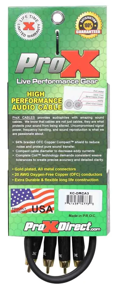 Prox XC-DRCA3 Unbalanced Dual RCA-M to Dual RCA-M High Performance Audio Cable – 3 Feet