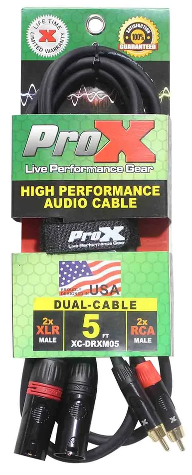 The Prox XC-DRXM05 is an Unbalanced Dual RCA-M to Dual XLR3-M High-Performance Audio Cable – 5 Feet is ideal for professional touring and live sound applications where a device with a dual female XLR-M output/input needs to be connected to a device with a dual RCA-M output/input. 20AWG Oxygen-Free Copper (OFC) conductors for maximum signal transfer. ProX cables are built with uncompromised quality with excellent performance at each connection – Instrument cables, Speaker cables, RCA cables, DMX cables, Power cables and more. Our cables are made for professionals, by professionals.