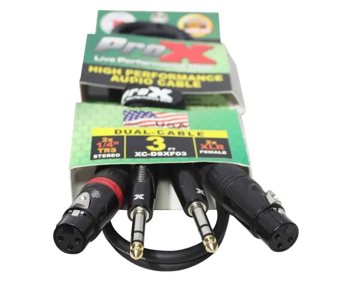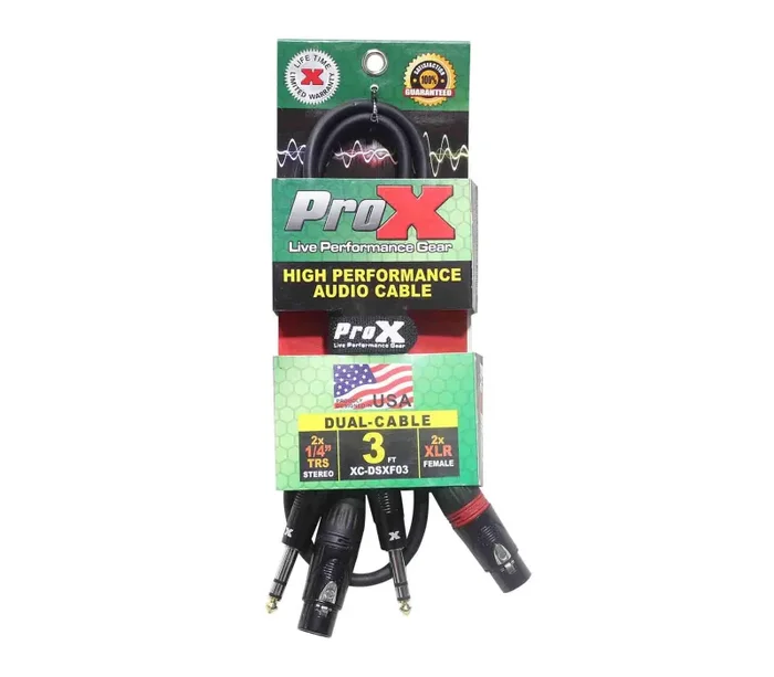 The Prox XC-DSXF03 is a Balanced Dual 1/4″ TRS-M to Dual XLR3-F High-Performance Audio Cable – 3 Feet is ideal for professional touring and live sound applications where a device with a dual TRS output/input needs to be connected to a device with a dual XLR3-F Balanced output/input. 20AWG Oxygen-Free Copper (OFC) conductors for maximum signal transfer. ProX cables are built with uncompromised quality with excellent performance at each connection – Instrument cables, Speaker cables, RCA cables, DMX cables, Power cables and more. Our cables are made for professionals, by professionals.