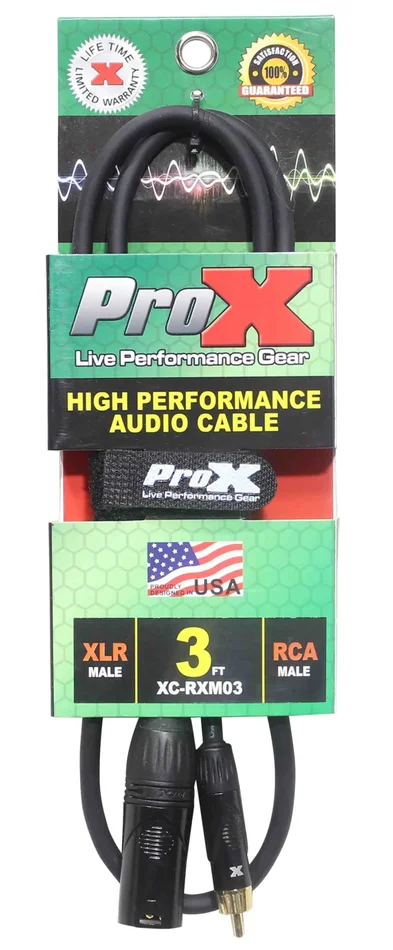 The Prox XC-RXM03 is an Unbalanced RCA to XLR3-M High-Performance Audio Cable – 3 Feet is ideal for professional touring and live sound applications where a device with a female XLR output/input needs to be connected to a device with a single RCA output/input. 20AWG Oxygen-Free Copper (OFC) conductors for maximum signal transfer. ProX cables are built with uncompromised quality with excellent performance at each connection – Instrument cables, Speaker cables, RCA cables, DMX cables, Power cables and more. Our cables are made for professionals, by professionals.