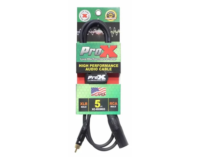 The Prox XC-RXM05 is an Unbalanced RCA to XLR3-M High-Performance Audio Cable – 5 Feet is ideal for professional touring and live sound applications where a device with a female XLR output/input needs to be connected to a device with a single RCA output/input. 20AWG Oxygen-Free Copper (OFC) conductors for maximum signal transfer. ProX cables are built with uncompromised quality with excellent performance at each connection – Instrument cables, Speaker cables, RCA cables, DMX cables, Power cables and more. Our cables are made for professionals, by professionals.