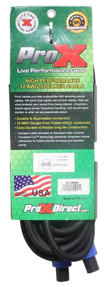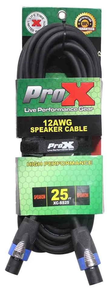 The Prox XC-SS25 is a SpeakOn to SpeakOn 12AWG High-Performance Speaker Cable – 25 Feet is ideal for professional touring and live sound applications where a device with a SpeakOn output/input needs to be connected to a device with another SpeakOn connector. 12 AWG Oxygen-Free Copper (OFC) conductors for maximum signal transfer.