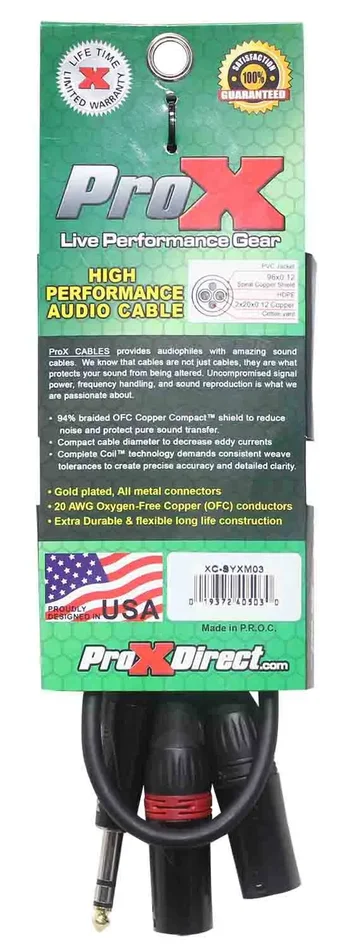 The Prox XC-SYXM03 is a 1/4″ TRS-M Stereo to Dual XLR3-M High-Performance Y Cable – 3 Feet is a 3 Ft. Splitter/Patch Cable going from 2 XLR3 Male Connectors to a Single TRS-M 1/4″ Stereo Connector. ProX cables are built with uncompromised quality with excellent performance at each connection – Instrument cables, Speaker cables, RCA cables, DMX cables, Power cables, and more. Our cables are made for professionals, by professionals.