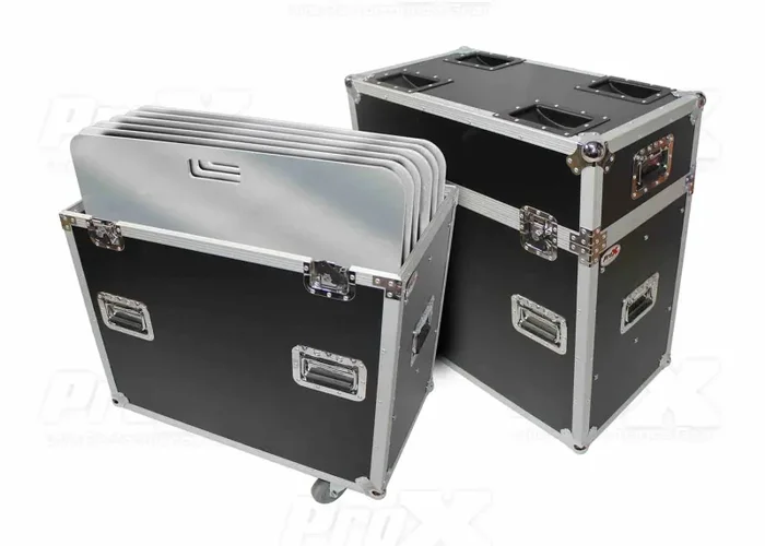 ProX XS-6XBP3030PACK Flight Case is constructed with our Signature Series 3/8″ Plywood, heavy-duty commercial recessed handles, and reinforced steel ball corners for years of on the road use. Each case holds up to six two-foot by two-foot (24″ x 24″) base plates. You can easily move the base plates from truck to your set up site with the four large commercial-grade casters, mounted on a durable 3/4″ plywood caster base, that roll across most surfaces with ease.
