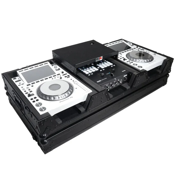 ProX XS-CDM3000WLTBL, DJ Coffin Case for Pioneer 2X CDJ-3000 CD and DJM-900NXS2 Mixer W/Wheels & Laptop Shelf – Black on Black
