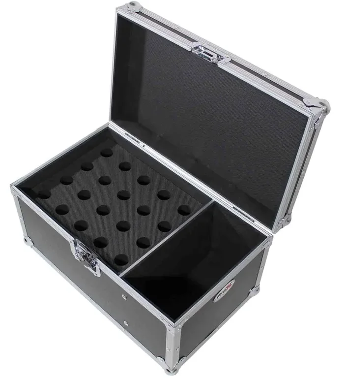 The ProX XS-MIC20S is a Microphone Case Holds 20 Handhelds with Side Storage. This ProX XS-MIC20S lightweight utility case is perfect for mobile audio professionals who need quality protection for their microphones and effortless transport. Sturdy handles and durability-minded features such as heavy-duty ball corners and butterfly latches.