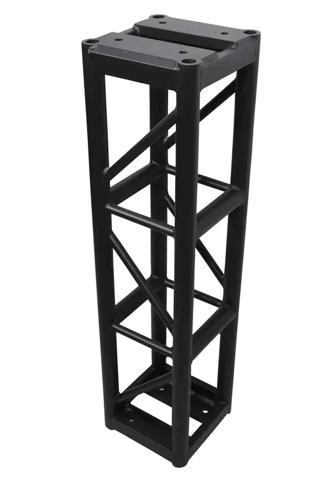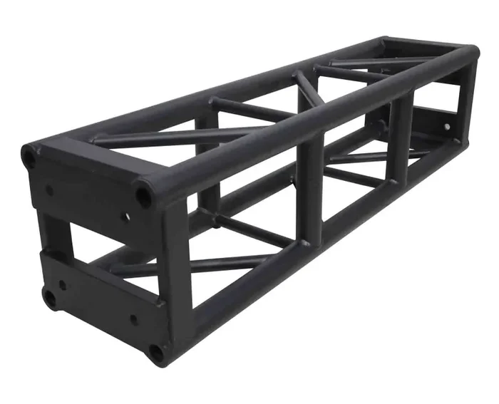 The ProX XT-BT1204 BLK, BoltX Black Bolted 12 Inch Professional Box Truss Segment with 4 Ft. Box Truss is designed and engineered for many applications like stage lighting, concerts, Ninja Obstacle Course type construction, and similar uses. Setting ourselves apart from other box truss manufacturers BoltX has an innovative end plate designed and manufactured with heavy-duty aluminum material, welded on both sides, and our exclusive circular rings at each corner of the truss to reduce or eliminate damage to the main chord ends. Since box trussing is often dropped or is dragged along concrete floors, this design will substantially lessen the need for expensive repairs to the tubes from the mishandling of the truss sections. Our outstanding quality control and manufacturing techniques assure excellent fitment at every connection to expedite your setups. Compatible with most other 12? Professional Box Truss Manufacturers utilizing a 6.75″ bolt center pattern. Each section of the truss includes one set of Four 5/8″ – 11 x 2.5″ (NC) attachment bolts, nuts, flat and lock washers.