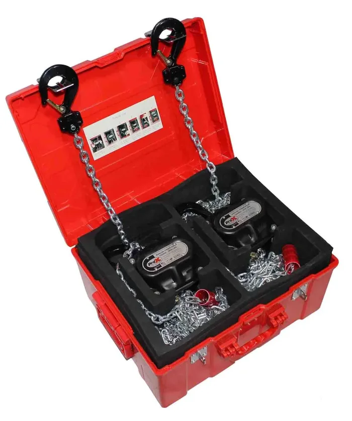 The ProX XT-MCH1TX2-30FT is a Set of 2 1 Ton Manual Chain Hoist with 30 Feet set of 2 Manual Chain Hoist. No electricity needed, just manual labor. Each Chain is rated for 1-ton capacity load bearing. Included are a chain bag for each Chain and a Heavy-Duty case for both hoists. Ideal for Stage, truss, and mobile stage.