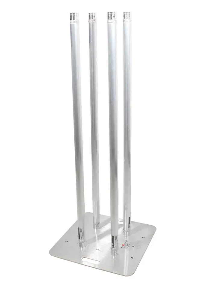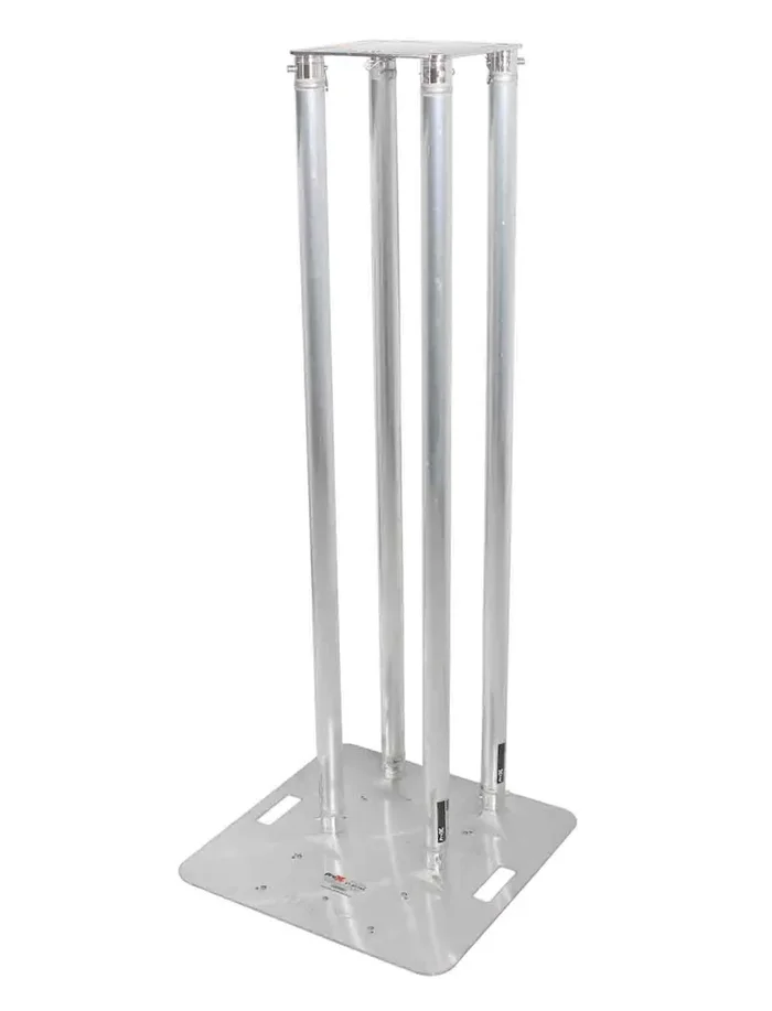 The ProX XT-S4X492TOTEM is a Totem Package 12″ Top Plate, 24″ Base Plate and Four 1.5m F31 Tubes with White Scrim Cover 4.92 Feet. The ProX XT-S4X492 TOTEM Truss Totem Package assembles some of the most popular products that are used for DJ Totems. At the core are four of the ProX XT-S492 Single Tube Truss sections which are made with 2mm EN-AWT6 6082 Aluminum for safety and strength, an XT-BP24A 24 In. x 24 In. 8mm Aluminum Base Plate, and an XT-BP12A 12″ X 12″ F34 8mm Aluminum Top Plate with Slots and Mounting Holes. You can use the totem exposed as “all-aluminum” or dress it up for a smooth, finished appearance with the included XTC-SQ492TS-W White Lycra-Spandex Cover.