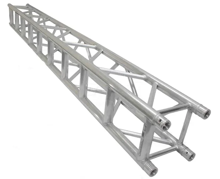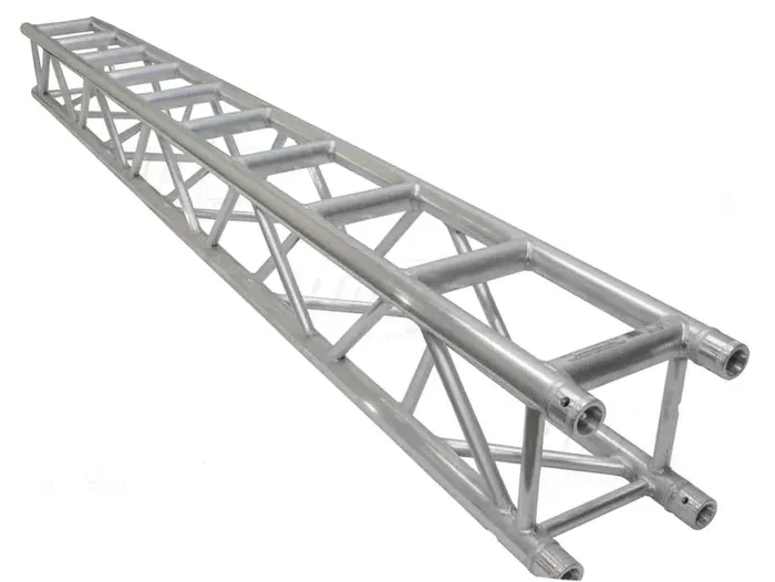 The Easy to Climb, Professional Ladder Truss system is a square truss that has one side as a ladder with 2″ tubes with 9 3/4″ spacing and utilizes a standard conical connector system, which easily mates with other brands of truss of the same size and connector style, and is available in a variety of lengths to suit your designs. It also works with different types of corners, base plates, connectors, and accessories that add stability while expanding on limitless configurations. Always consult an engineer for complex designs.