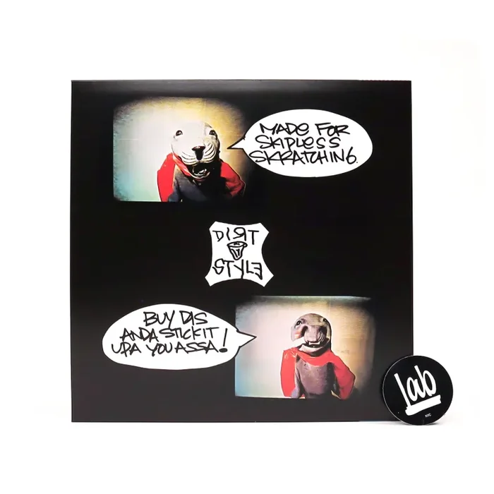 The best-selling skratch record of all-time. This really works. One side is entirely skip-proof. We tested it and when the needle jumps, the sound placement is very accurate and on-point. On this side, there are: 11 skip proof skratch sections ranging from beep-ahhh to more complex combos; 1 skip proof drum section, 1 dual tone (2 tones that can be separated into left-right channel), and one locked beat. The flip features 3 beats and one bass tone. Lookout for the neck snap beat used for Toadman’s rap on Pharaohs of Funk. Also a blazing electro beat you’ll also recognize. One of the most useful and classic scratch records in the Dirtstyle catalog.