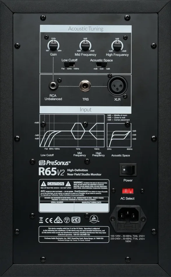 A set of four acoustic tuning controls allow you to tailor the R65 V2’s frequency response to compensate for the anomalies of nearly any mix environment – so you can expect predictable, consistent performance in the event you use them in more than one place.