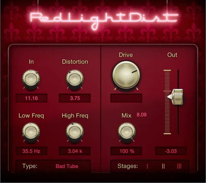 Turn on the red light and get as dirty as you like with Red Light Distortion; an analog distortion emulator with six selectable distortion models: Soft Tube, Hard Tube, Bad Tube, Transistor, Fuzz, or OpAmp. Whether you just need a little grit and warmth or enough distortion to bring Atari Teenage Riot to their knees, Red Light Distortion delivers. With six models to choose from, two EQ controls, a Mix control, and independent Drive and Distortion controls, you’ll be able to design a unique, signature distortion that is completely your own!