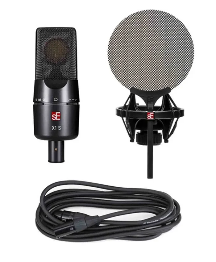 The sE Electronics X1 S Vocal Pack Microphone with Shockmount and Cable. The X1 S Vocal Pack All the essentials for the start of a great recording chain, including sE’s simple but highly effective metal pop shield. Contains X1 S microphones Isolation Pack (with pop shield),3-meter mic cable.
