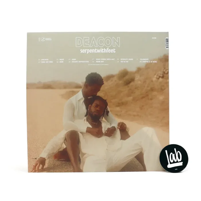 “Serpentwithfeet is not only imagining, but exploring a world wherein Black love is paramount. His new album, DEACON, is ‘a study rather than a story,’ delving into Black, gay love and the tenderness present in the best companionships, romantic or otherwise. Fully self-actualized and more devoted than ever to personal fulfillment, DEACON highlights his growth as a songwriter, which he credits to taking a more straightforward approach to expression. Spending time with pop songwriters and observing how they traverse language encouraged serpent to take more risks lyrically, resulting in more purity. Raised by religious parents in Baltimore, serpent’s flair for theatrical themes and gospel sensibilities can be traced to the Black church, a place where the artist had his earliest experiences with glamour and the ornate. Well-executed vocal flourishes and the implementation of a quickening vibrato are just a few of the skills he picked up during his time in a Pentecostal choir. He proudly follows in the tradition of R&B artists whose gifts were helmed in the church, and he approached DEACON with an undeniable passion and reverence for the genre. In his love for love, serpentwithfeet is offering a look into the soul of a man who articulates his passion in a warmer, gentler way. He’s become wholly confident in his gift and messaging on DEACON, which is to be expected when one gives vent to maturity. Through his music, he allows compassion to be the backbone of his art, as he communes with his most loving self.” – Secretly Canadian