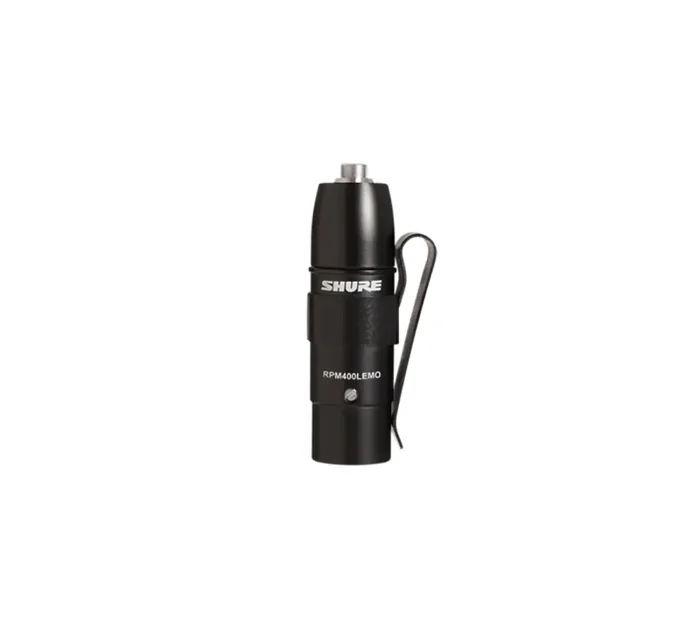 The Shure RPM400LEMO is Wired LEMO3 to XLR Preamplifier with Beltclip. features LEMO3 to XLR connectors and includes a belt clip. The preamp works with all TwinPlex microphones including the TL45, TL46, TL47, and TL48 lavalier microphones and the TH53 headset microphone.