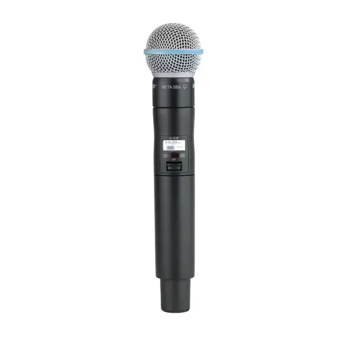 The Shure ULXD2/B58 is a high-performance handheld wireless microphone transmitter, designed for professional use with ULX-D Digital Wireless Systems. Featuring the renowned Beta 58A microphone capsule, it delivers superior vocal clarity and sound isolation, making it ideal for live performances and sound reinforcement. The transmitter is equipped with AES 256-bit encryption for secure wireless transmission and Shure’s proprietary Gain Ranging technology, which automatically optimizes dynamic range for any input source. It offers the option to use the Shure SB900B rechargeable battery for over 12 hours of continuous performance. The rugged metal construction ensures durability, while a backlit LCD and intuitive controls make it easy to operate. With external charging contacts for docked charging and a transmitter mute mode for audio control, the ULXD2/B58 is a versatile, secure, and reliable choice for wireless audio needs.