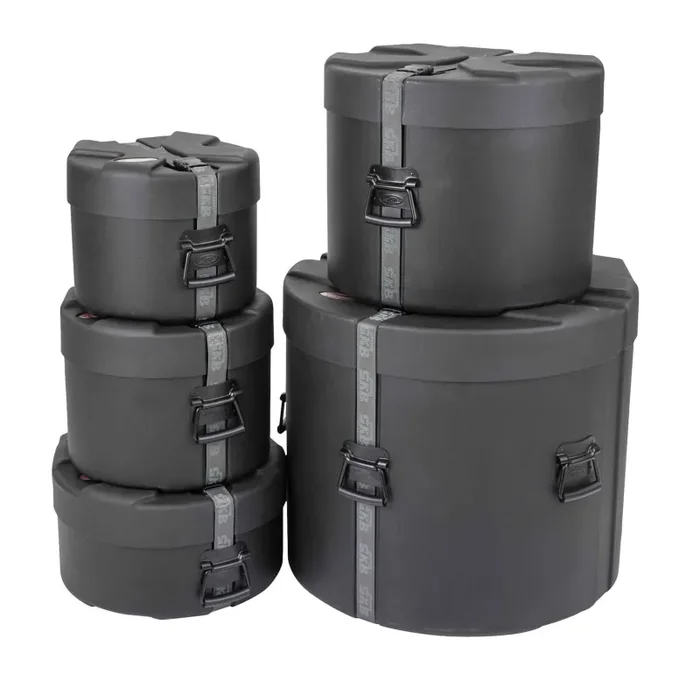 The SKB Cases 1SKB-UDP1 Ultimate Drum Package. It includes the 8 x 10 Tom, 9 x 12 Tom, 6.5 x 14 Snare, 14 x 16 Floor Tom, and 18 x 22 Bass cases creating the Ultimate Drum Package of cases. The 1SKB-UDP1 combines some of the most popular sizes all in one kit.