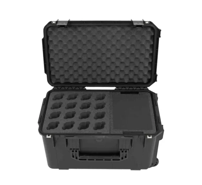The SKB Cases 3i-221312WMC iSeries is a Waterproof Case for 16 Wireless Microphones with a custom foam interior to protect a variety of mic brands including Shure and Sennheiser.