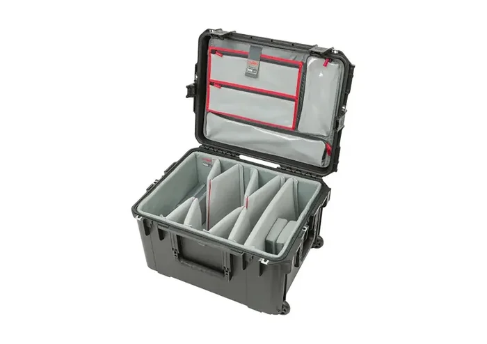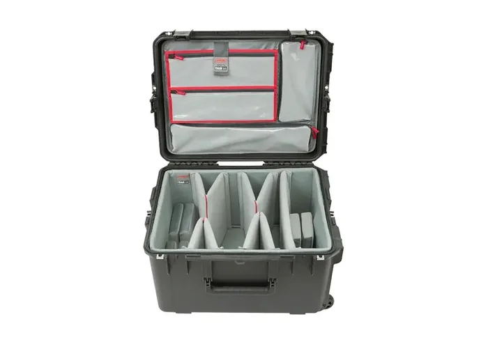 The 3i-2217-12DL is watertight and dustproof, and features a deluxe deep closed cell fitted foam liner, (4) heavy duty hinged dividers, (6) closed cell foam pads, and (1) heavy duty divider, all of which are Nylex-wrapped and designed with heavy duty hook-and-loop tabs to create the perfect fit. This case also features an adhesive-backed hook-and-loop attached lid organizer with laminated clear mesh pockets and a polyester-lined iPad/laptop top-load pocket, built-in wheels, and a convenient pull handle for easy transport.