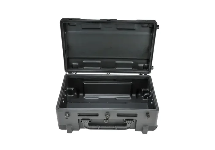 This size features built-in wheels. Our rSeries cases come standard with an empty interior, and some models are available with cubed foam, layered foam, padded dividers, and a pull handle with wheels.