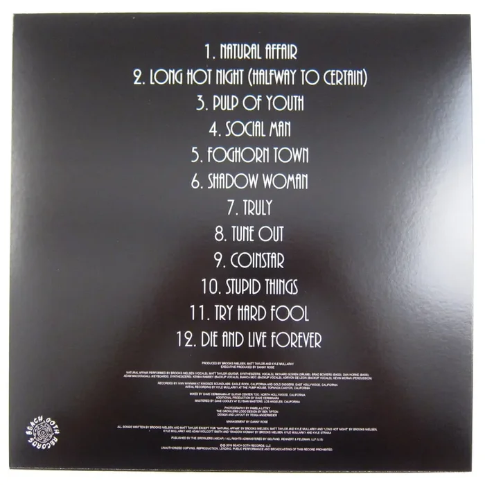 The Growlers are an American indie band who perform music in a self-professed “Beach Goth” style that integrates elements of surf, psychedelic, and garage rock with a heavy New Wave influence. Natural Affair is their 7th album, and demonstrates their clear nostalgia for acts such as The Strokes and Arctic Monkeys, reviving that 80s-via-2ks aesthetic for the 2020s. “Natural Affair” is jangling guitars, too-cool-for-school crooning, and nicely defined bass. “Long Hot Night” emphasizes the surf licks and sharp snares, soaring keyboards and a charmingly Casablancas-esque delivery on the chorus. “Pulp of Youth” is a more low-key number with instrumentation that calls to mind early Madonna, “Try Hard Fool” begins as a moody organ-driven ballad but builds to a wall of cathartic and buzzy cacophony. This album is pressed on black vinyl, and comes with a bonus postcard.