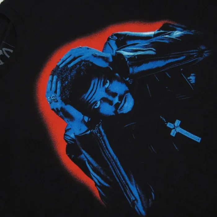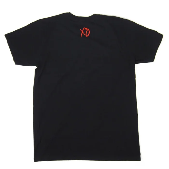 Cover shot from The Weeknd’s third album gets the shirt treatment. Features the Nabil Elderkin’s photograph of Abel (sans hair) on the front with small “XO” logo hit below neck. 100% cotton, standard fit.