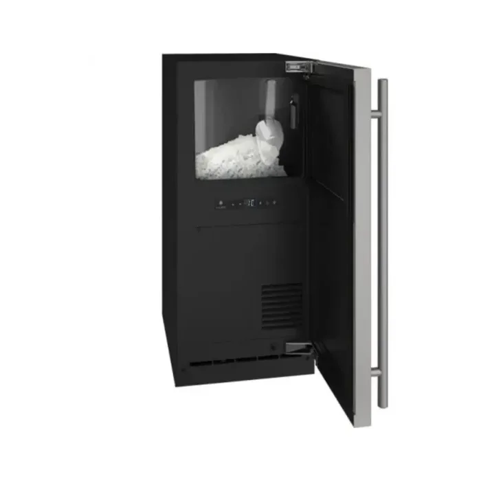 U-Line 1 Class UHNB315SS01A 15 Inch Nugget Ice Machine with LED Lighting, Eco Friendly, Digital Controls, Soft Close Door and Black Interior