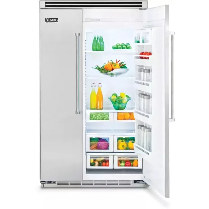 Viking 5 Series VCSB5483SS 48 Inch Counter Depth Built-In Side by Side Refrigerator with 29.05 Cu. Ft. Total Capacity, ProChill™ Temperature Management, Spillproof Plus™ Shelves, LED Lighting, Ice Maker: Stainless Steel