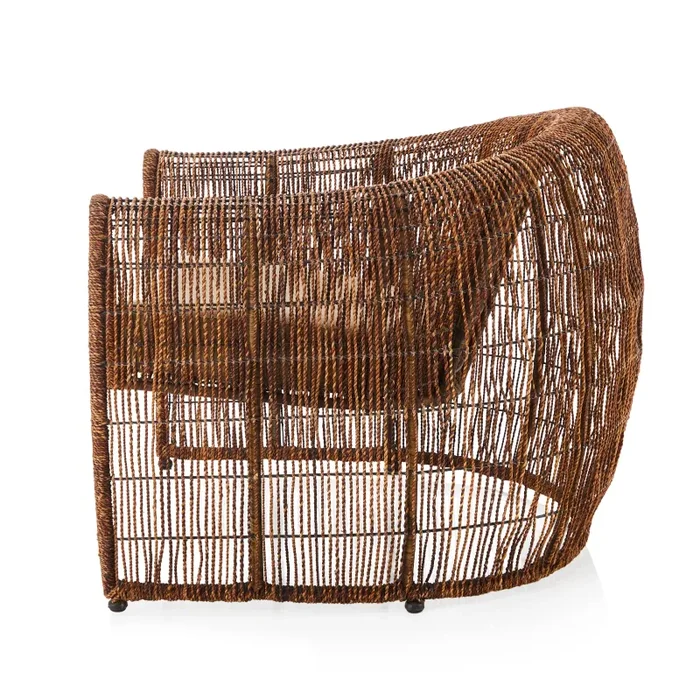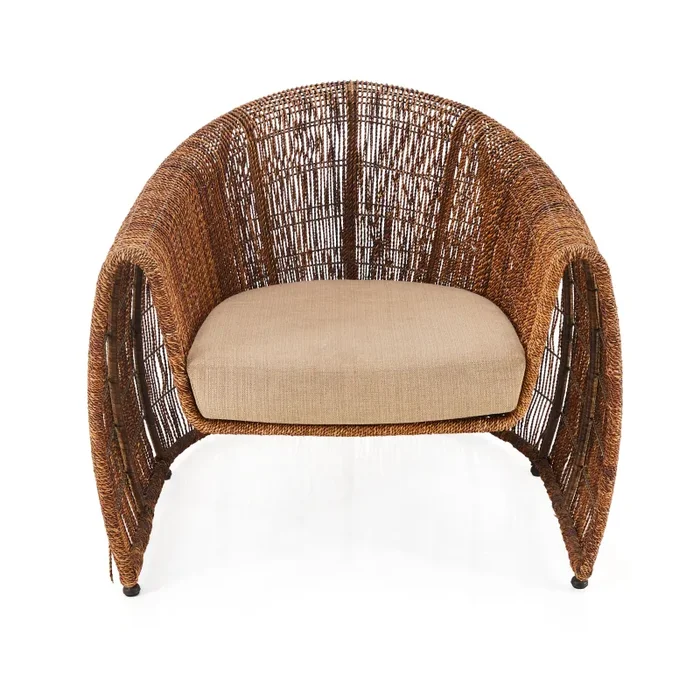 Wicker Barrel Back Lounge Chair w Tan Cushion