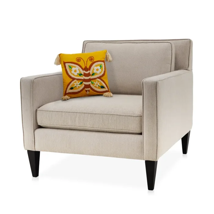 Details: Yellow and brown embroidered butterfly pillow with white tassels