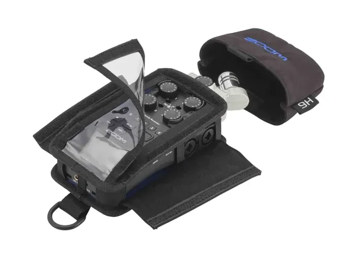 The Zoom PCH-6 will keep your Handy Recorder protected without sacrificing portability and control. Water-resistant material and the clear-windowed cover will keep your device clean and dry while allowing you to visually monitor your recordings. Just pull the window back to make adjustments. Rigid top and bottom covers provide support and protection, while velcro panels on the top, bottom, and sides allow for easy access to all controls.